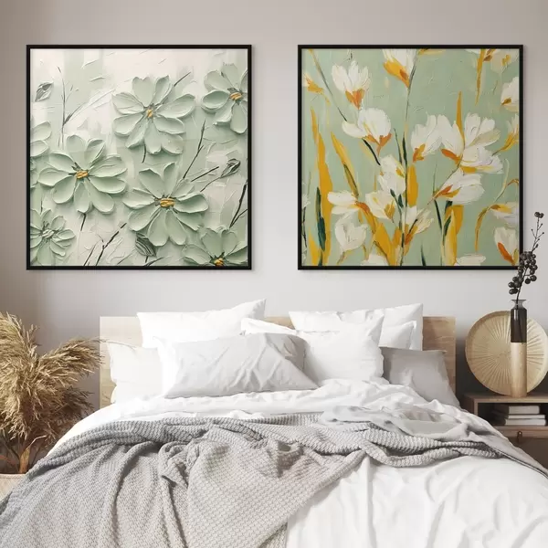 Plakatas Gėlių pieva: meno kompozicija su tūrinėmis gėlėmis pasteliniame fone Ne d00567