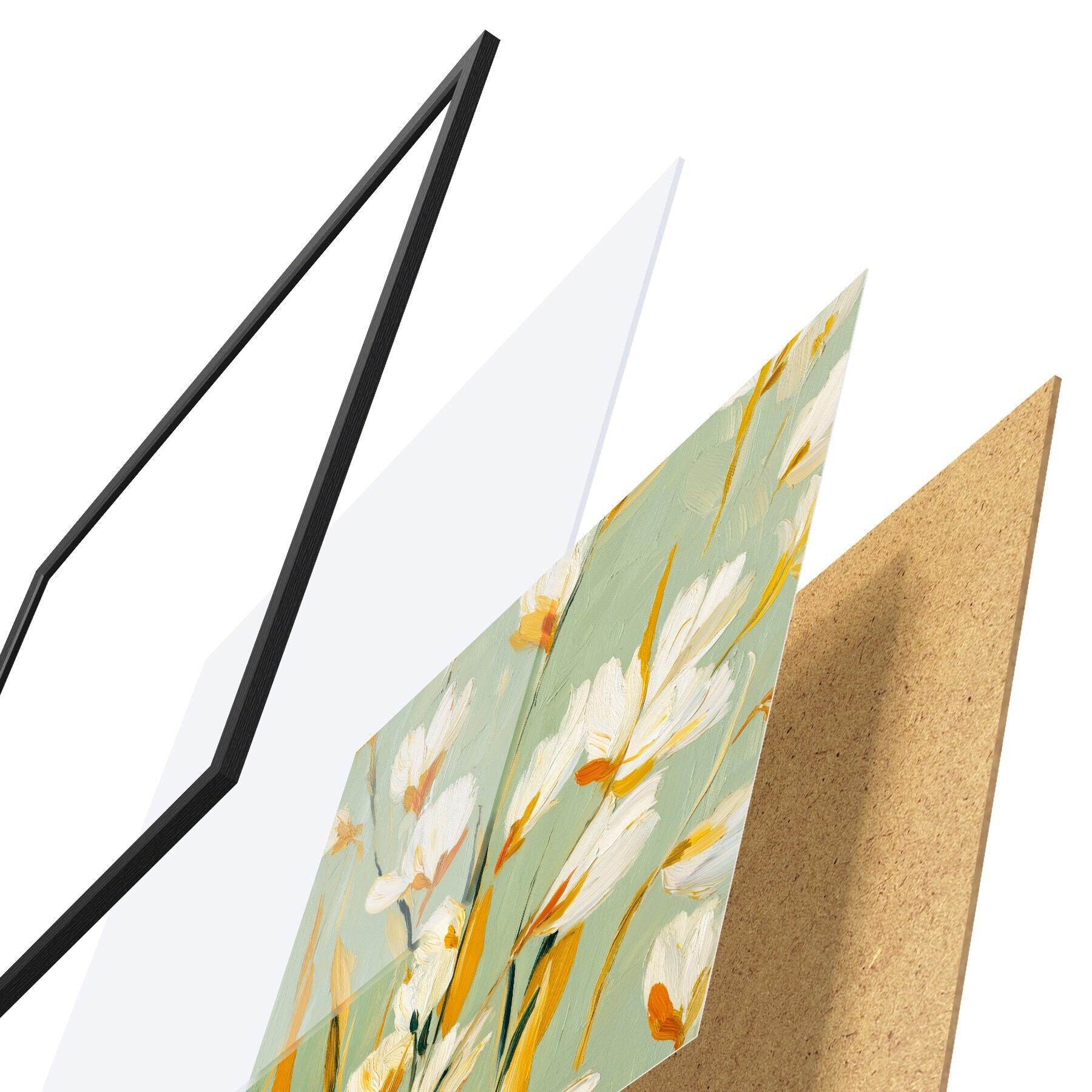 Plakatą sudaro rėmas, pleksiklas, atspausdintas vaizdas ir medžio drožlių plokštės pagrindas. Plakatą galima iš karto pakabinti ant sienos dėl kitoje pusėje esančių laikiklių.