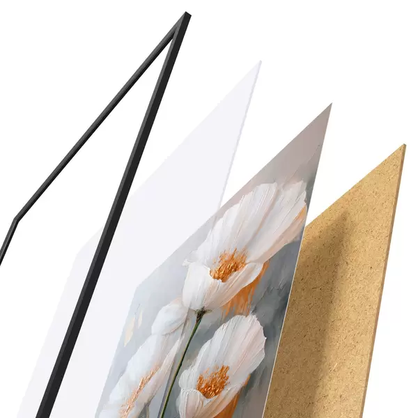 Plakatą sudaro rėmas, pleksiklas, atspausdintas vaizdas ir medžio drožlių plokštės pagrindas. Plakatą galima iš karto pakabinti ant sienos dėl kitoje pusėje esančių laikiklių.