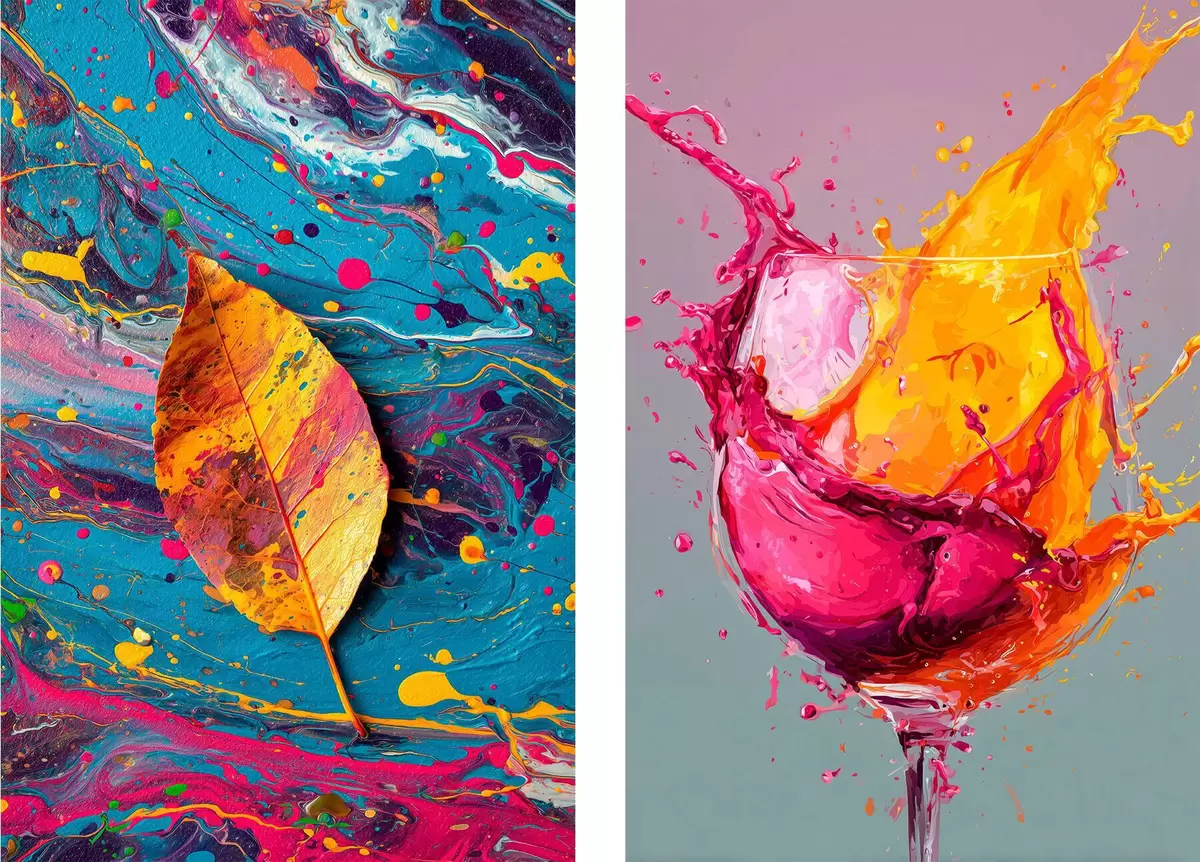 Plakatas Ekspresyvi abstrakcija su gamtos ir gėrimų elementais d00570