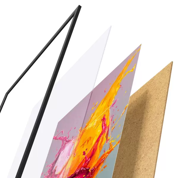 Plakatą sudaro rėmas, pleksiklas, atspausdintas vaizdas ir medžio drožlių plokštės pagrindas. Plakatą galima iš karto pakabinti ant sienos dėl kitoje pusėje esančių laikiklių.