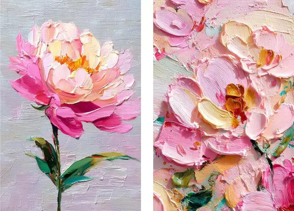 Plakatas Šiuolaikinis menas su rausvomis gėlėmis, atliktas tūrine technika d00572