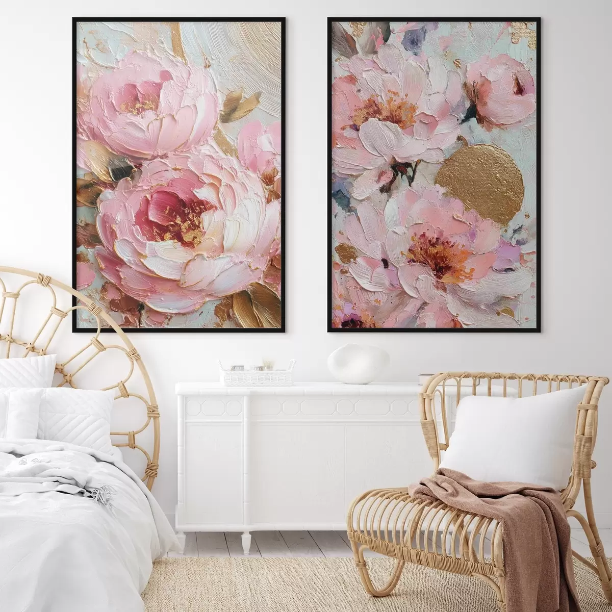 Plakatas Tūrinė impasto tapyba su rausvais bijūnais ir faktūrinėmis detalėmis Ne d00573