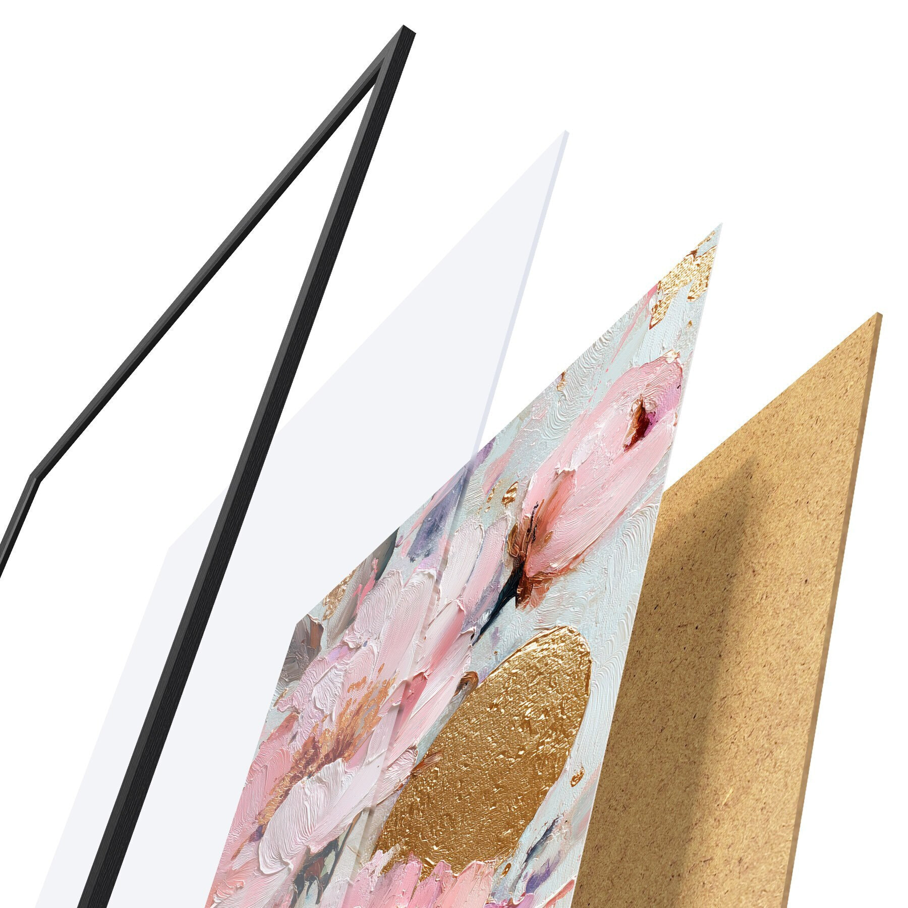 Plakatą sudaro rėmas, pleksiklas, atspausdintas vaizdas ir medžio drožlių plokštės pagrindas. Plakatą galima iš karto pakabinti ant sienos dėl kitoje pusėje esančių laikiklių.