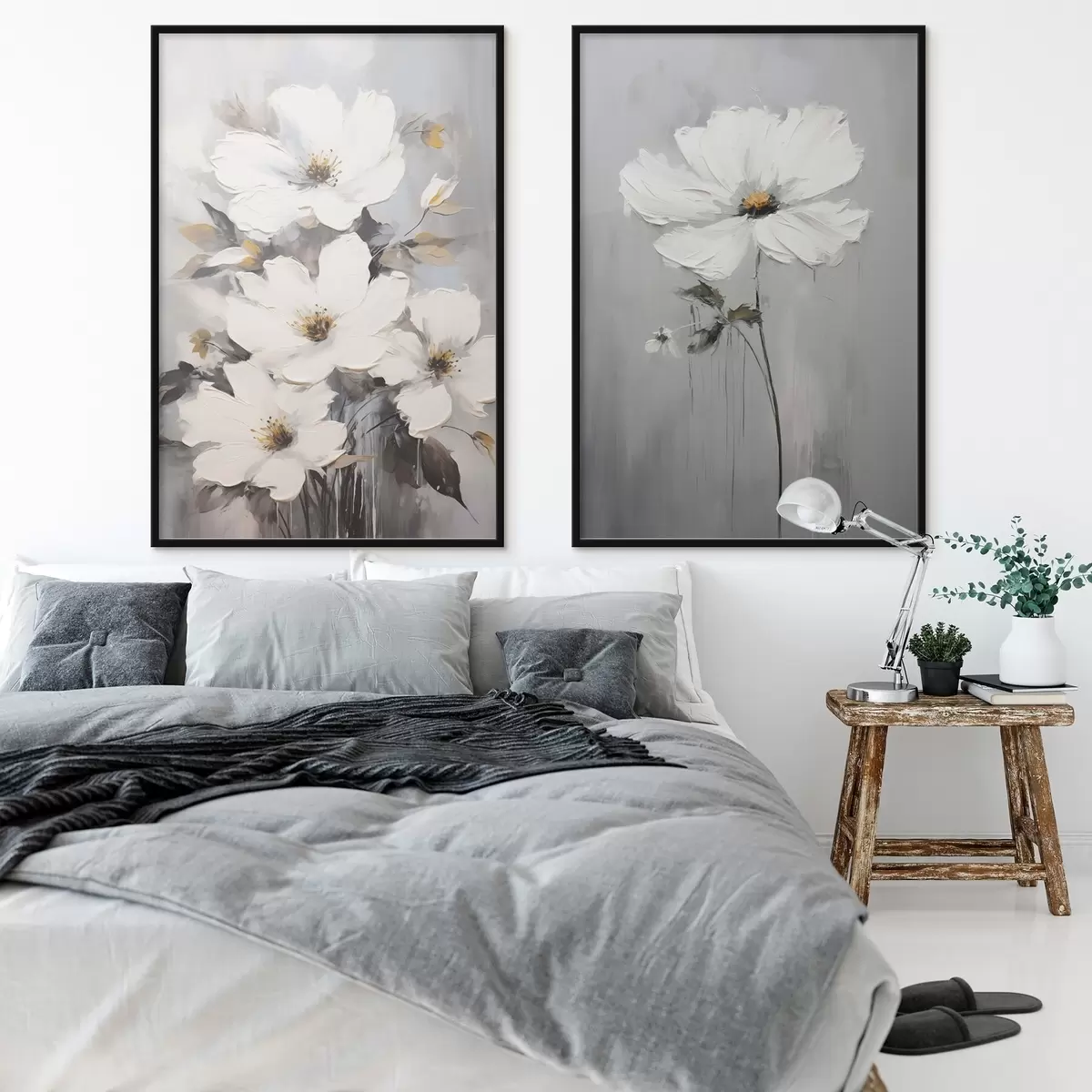Plakatas Meninė kompozicija su baltomis gėlėmis ir tekstūriniu paviršiumi minimalistiniu stiliumi Ne d00574