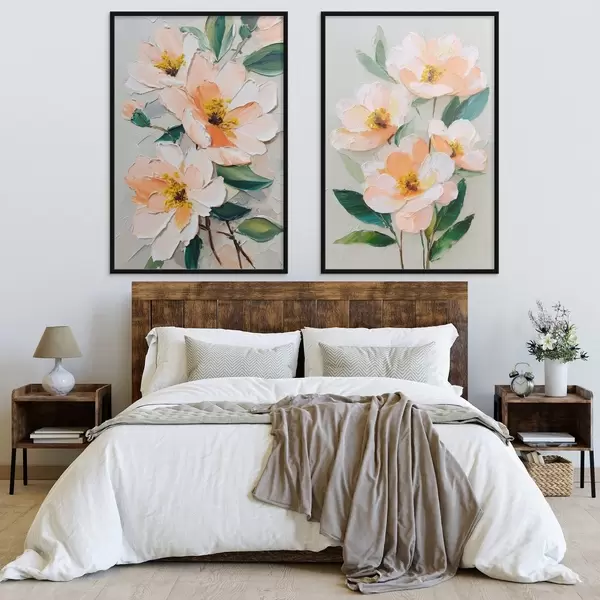 Plakatas Impasto stiliaus paveikslas, kuriame derinama didelė puokštė ir atskiros gėlės d00579