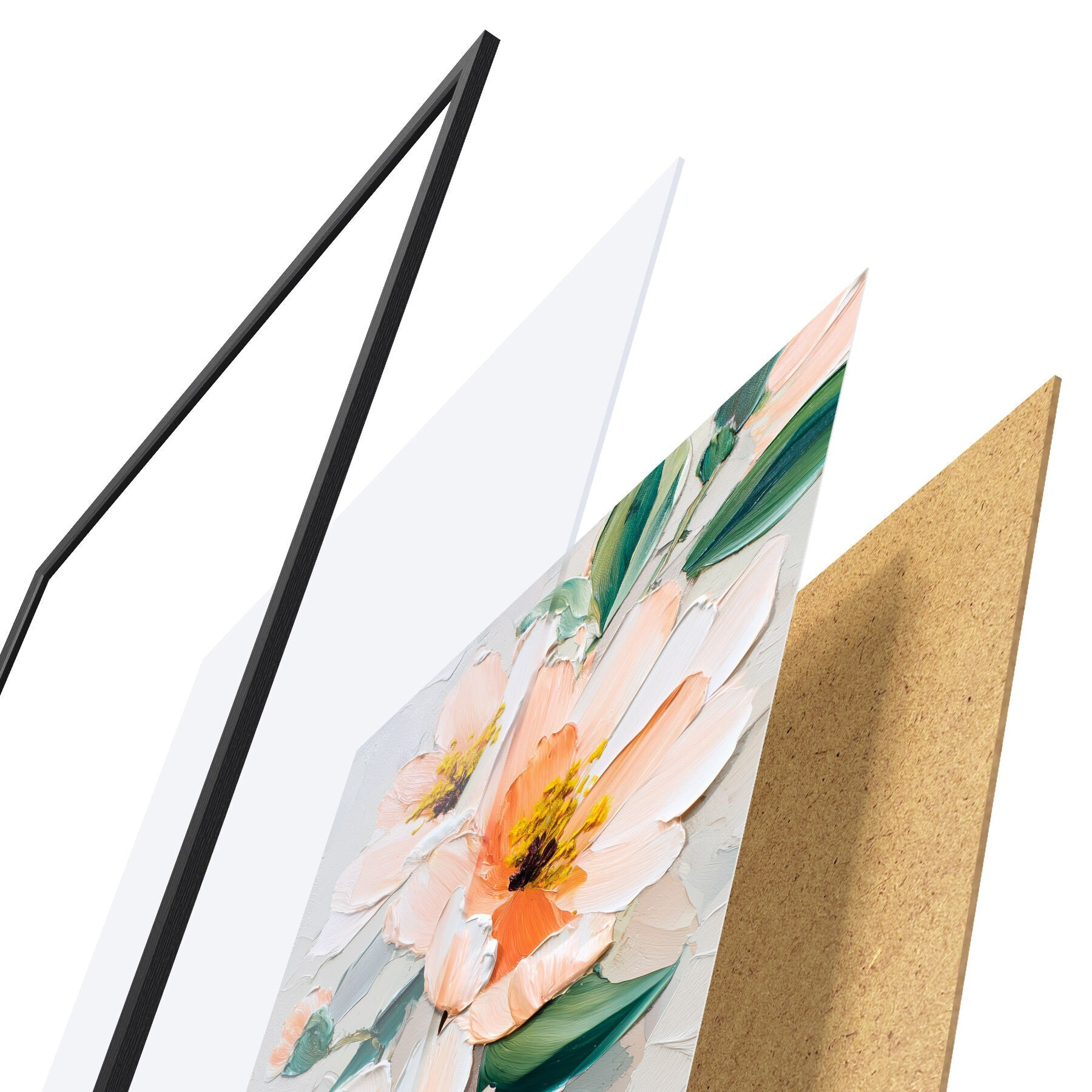Plakatą sudaro rėmas, pleksiklas, atspausdintas vaizdas ir medžio drožlių plokštės pagrindas. Plakatą galima iš karto pakabinti ant sienos dėl kitoje pusėje esančių laikiklių.