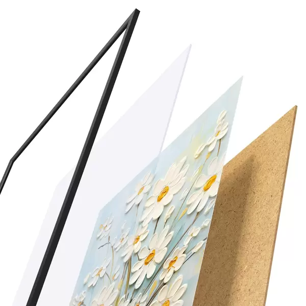 Plakatą sudaro rėmas, pleksiklas, atspausdintas vaizdas ir medžio drožlių plokštės pagrindas. Plakatą galima iš karto pakabinti ant sienos dėl kitoje pusėje esančių laikiklių.
