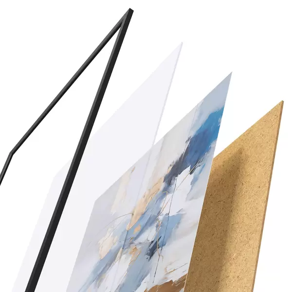 Plakatą sudaro rėmas, pleksiklas, atspausdintas vaizdas ir medžio drožlių plokštės pagrindas. Plakatą galima iš karto pakabinti ant sienos dėl kitoje pusėje esančių laikiklių.