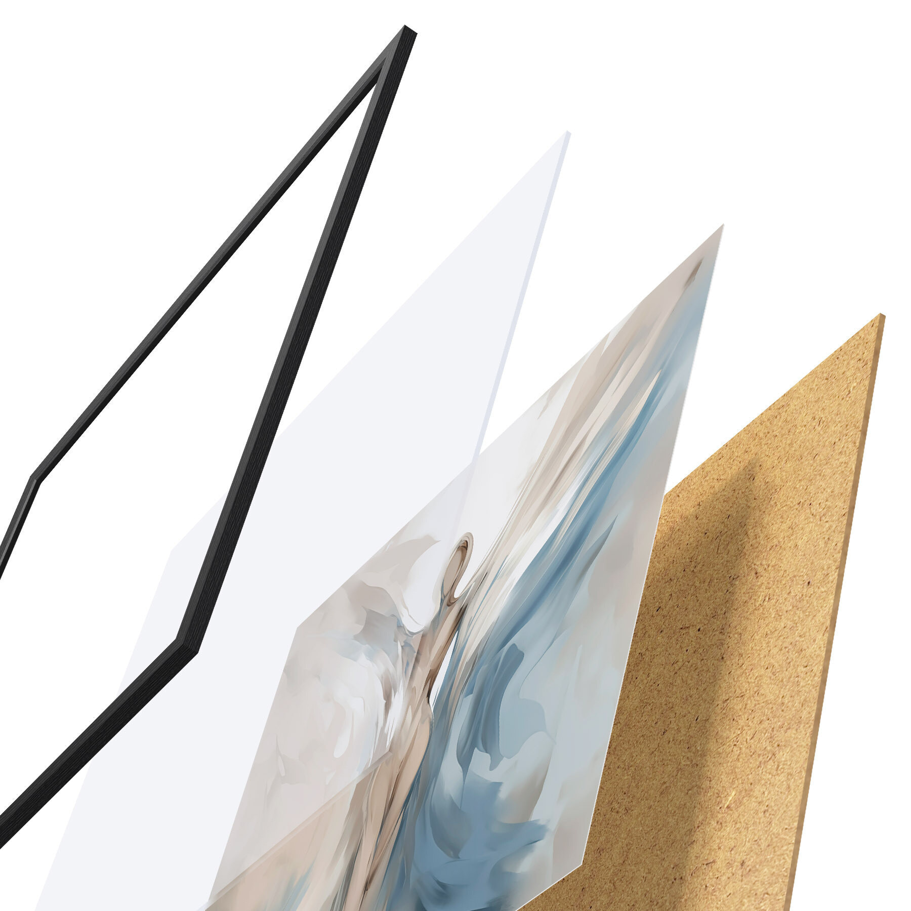 Plakatą sudaro rėmas, pleksiklas, atspausdintas vaizdas ir medžio drožlių plokštės pagrindas. Plakatą galima iš karto pakabinti ant sienos dėl kitoje pusėje esančių laikiklių.