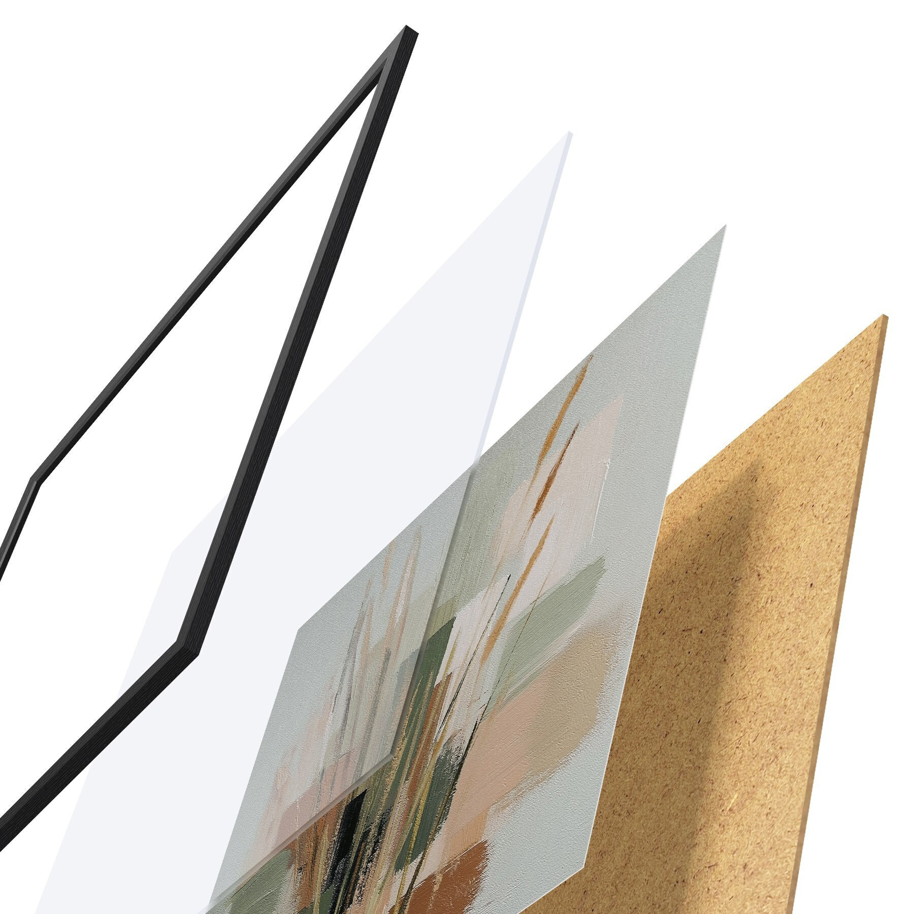 Plakatą sudaro rėmas, pleksiklas, atspausdintas vaizdas ir medžio drožlių plokštės pagrindas. Plakatą galima iš karto pakabinti ant sienos dėl kitoje pusėje esančių laikiklių.