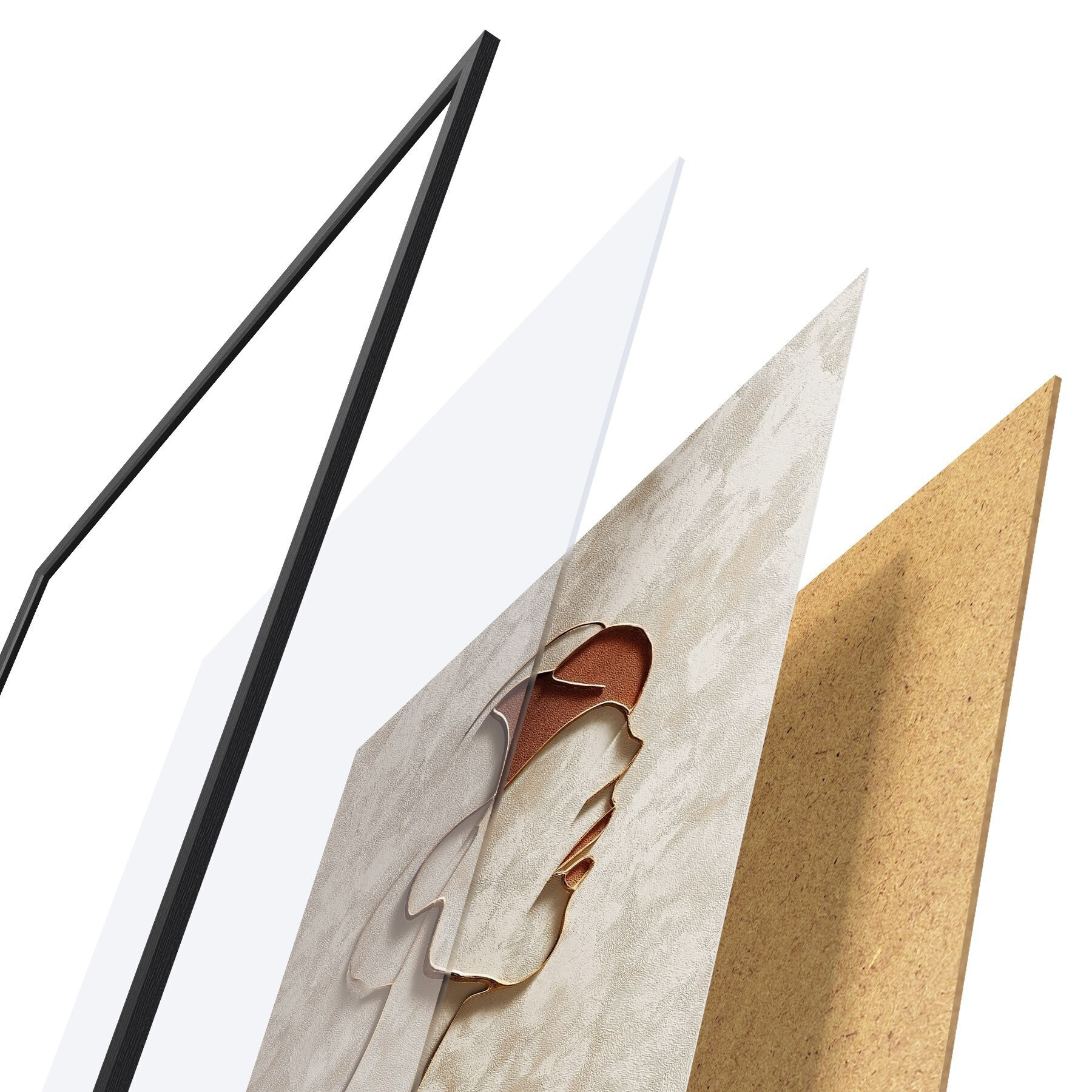 Plakatą sudaro rėmas, pleksiklas, atspausdintas vaizdas ir medžio drožlių plokštės pagrindas. Plakatą galima iš karto pakabinti ant sienos dėl kitoje pusėje esančių laikiklių.