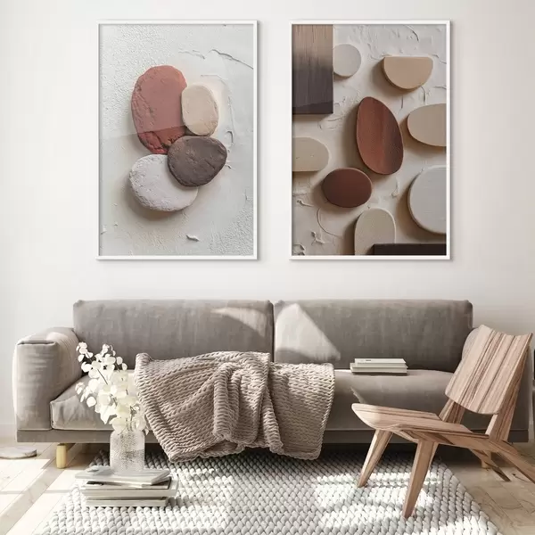 Plakatas Abstrakčios kompozicijos su tūrinėmis geometrinėmis figūromis tekstūriniame fone Ne d00597