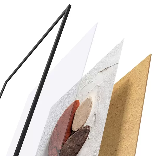 Plakatą sudaro rėmas, pleksiklas, atspausdintas vaizdas ir medžio drožlių plokštės pagrindas. Plakatą galima iš karto pakabinti ant sienos dėl kitoje pusėje esančių laikiklių.