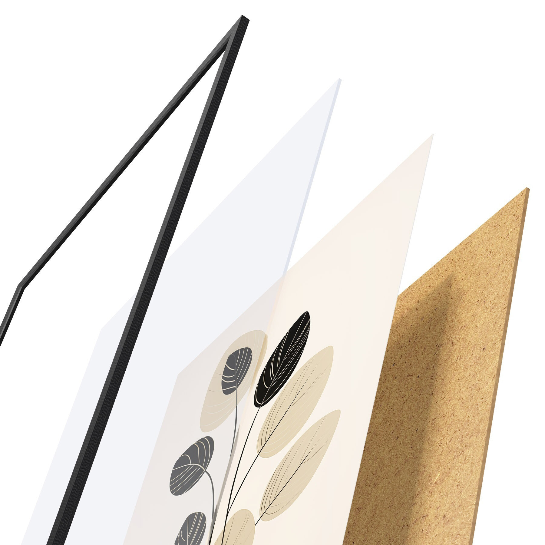 Plakatą sudaro rėmas, pleksiklas, atspausdintas vaizdas ir medžio drožlių plokštės pagrindas. Plakatą galima iš karto pakabinti ant sienos dėl kitoje pusėje esančių laikiklių.