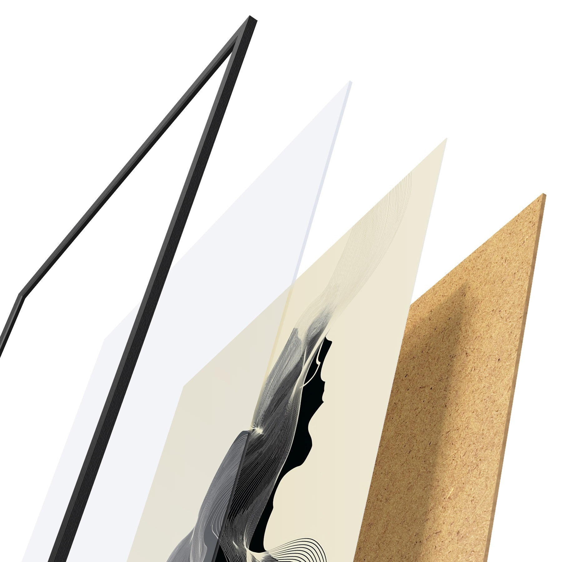 Plakatą sudaro rėmas, pleksiklas, atspausdintas vaizdas ir medžio drožlių plokštės pagrindas. Plakatą galima iš karto pakabinti ant sienos dėl kitoje pusėje esančių laikiklių.