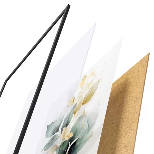 Plakatą sudaro rėmas, pleksiklas, atspausdintas vaizdas ir medžio drožlių plokštės pagrindas. Plakatą galima iš karto pakabinti ant sienos dėl kitoje pusėje esančių laikiklių.