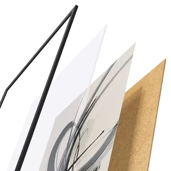 Plakatą sudaro rėmas, pleksiklas, atspausdintas vaizdas ir medžio drožlių plokštės pagrindas. Plakatą galima iš karto pakabinti ant sienos dėl kitoje pusėje esančių laikiklių.