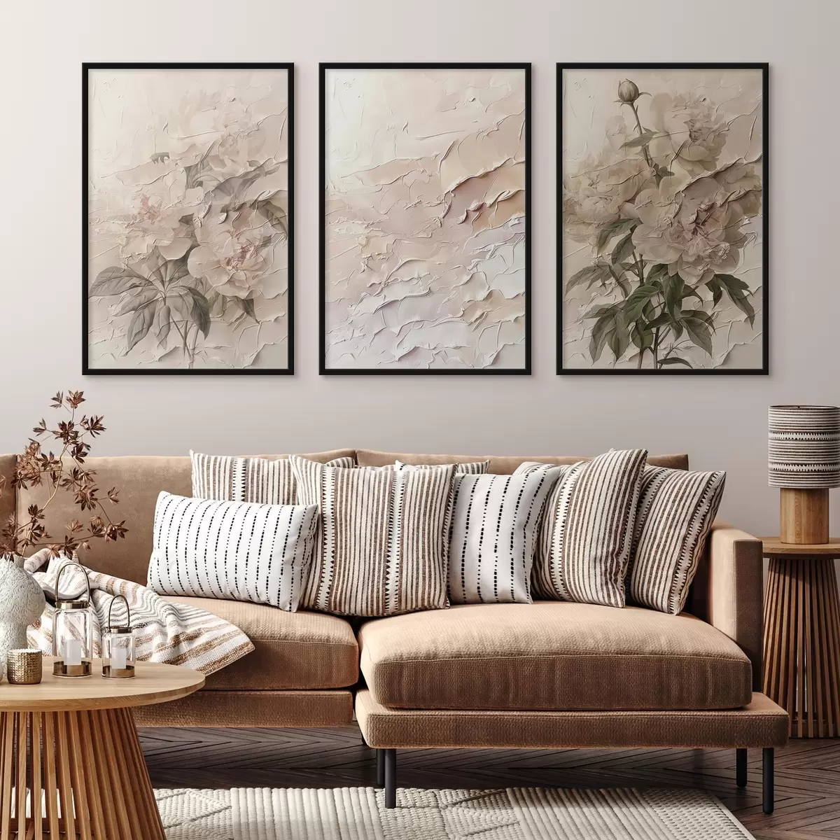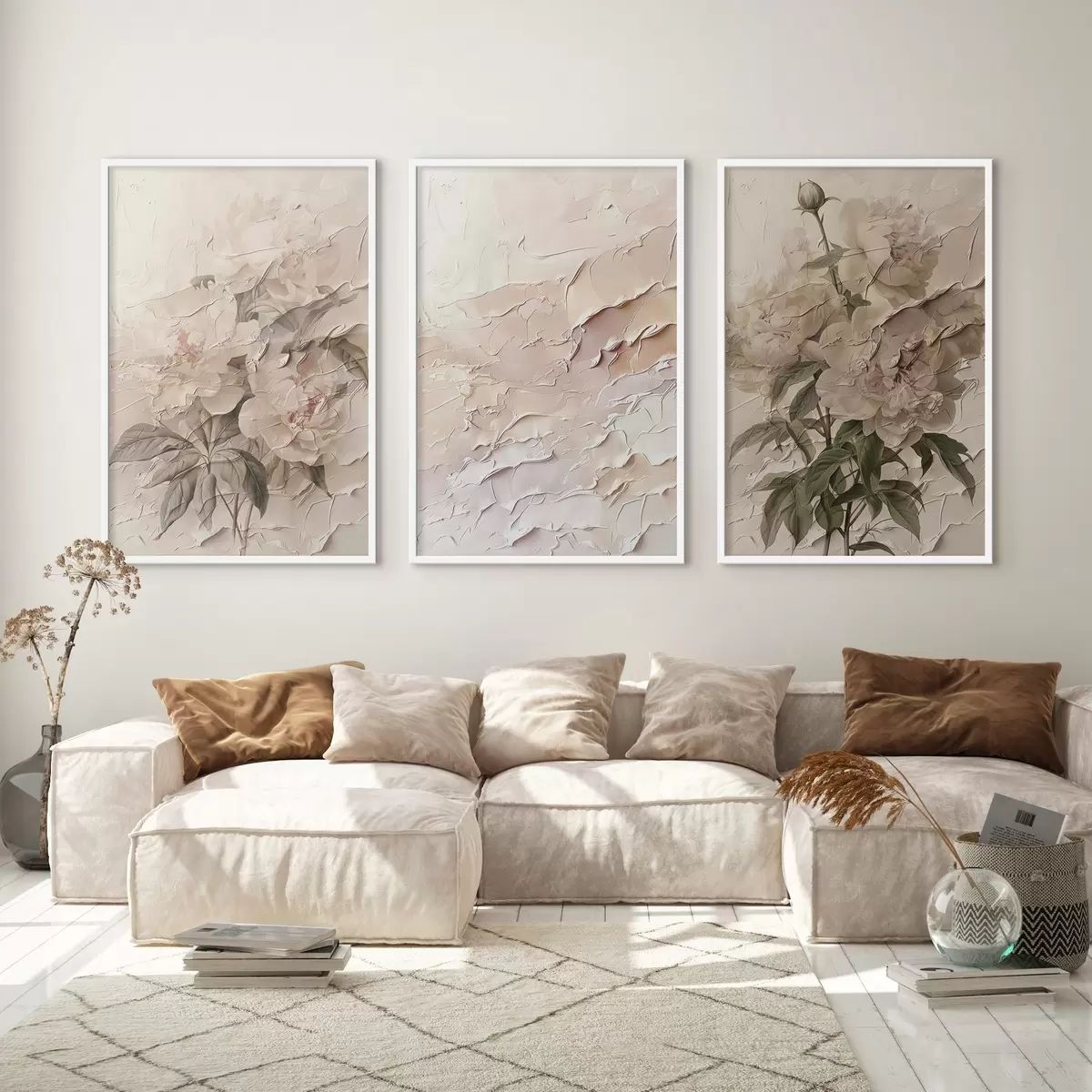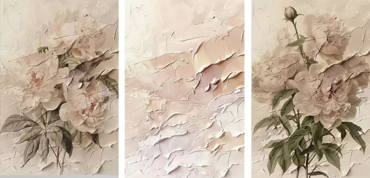 Plakatas Bijūnų puokštė ir dažų potėpio efektas d00616