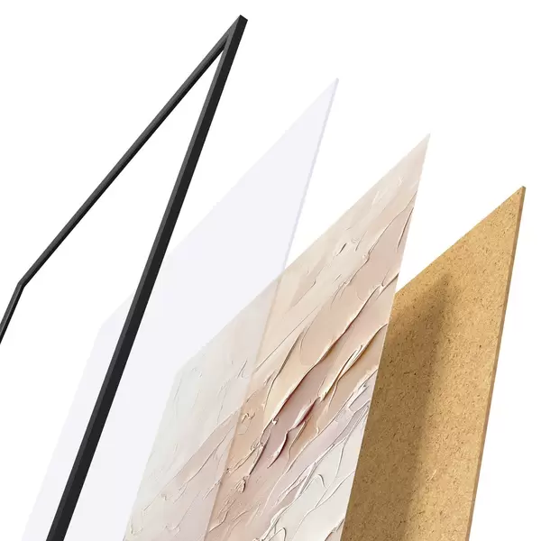 Plakatą sudaro rėmas, pleksiklas, atspausdintas vaizdas ir medžio drožlių plokštės pagrindas. Plakatą galima iš karto pakabinti ant sienos dėl kitoje pusėje esančių laikiklių.