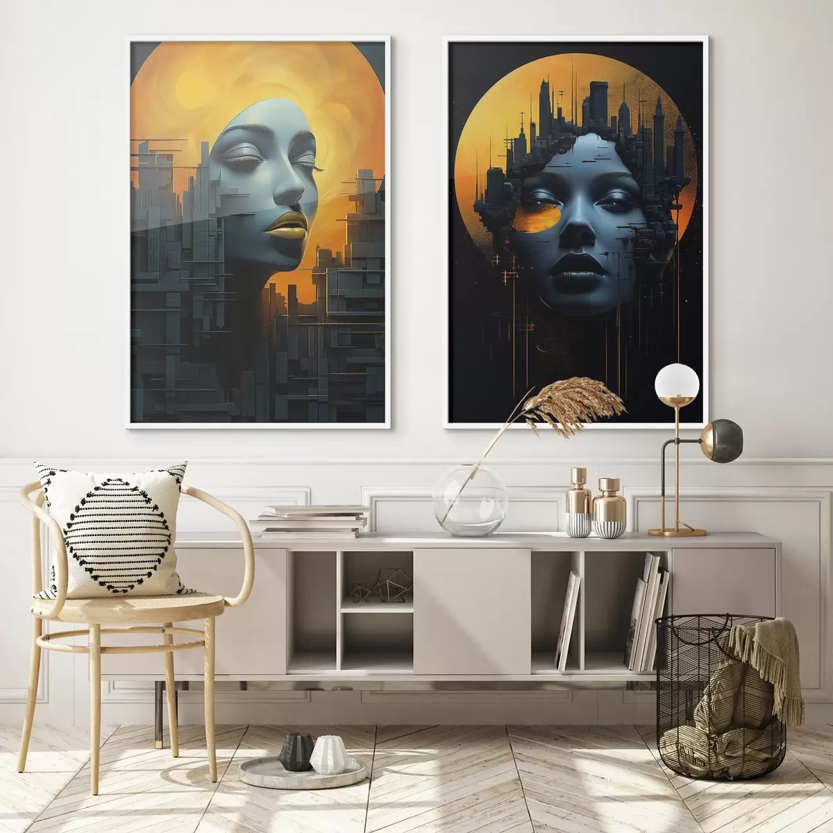 Plakatas Mergaitės portretas abstrakčiame miesto fone d00618