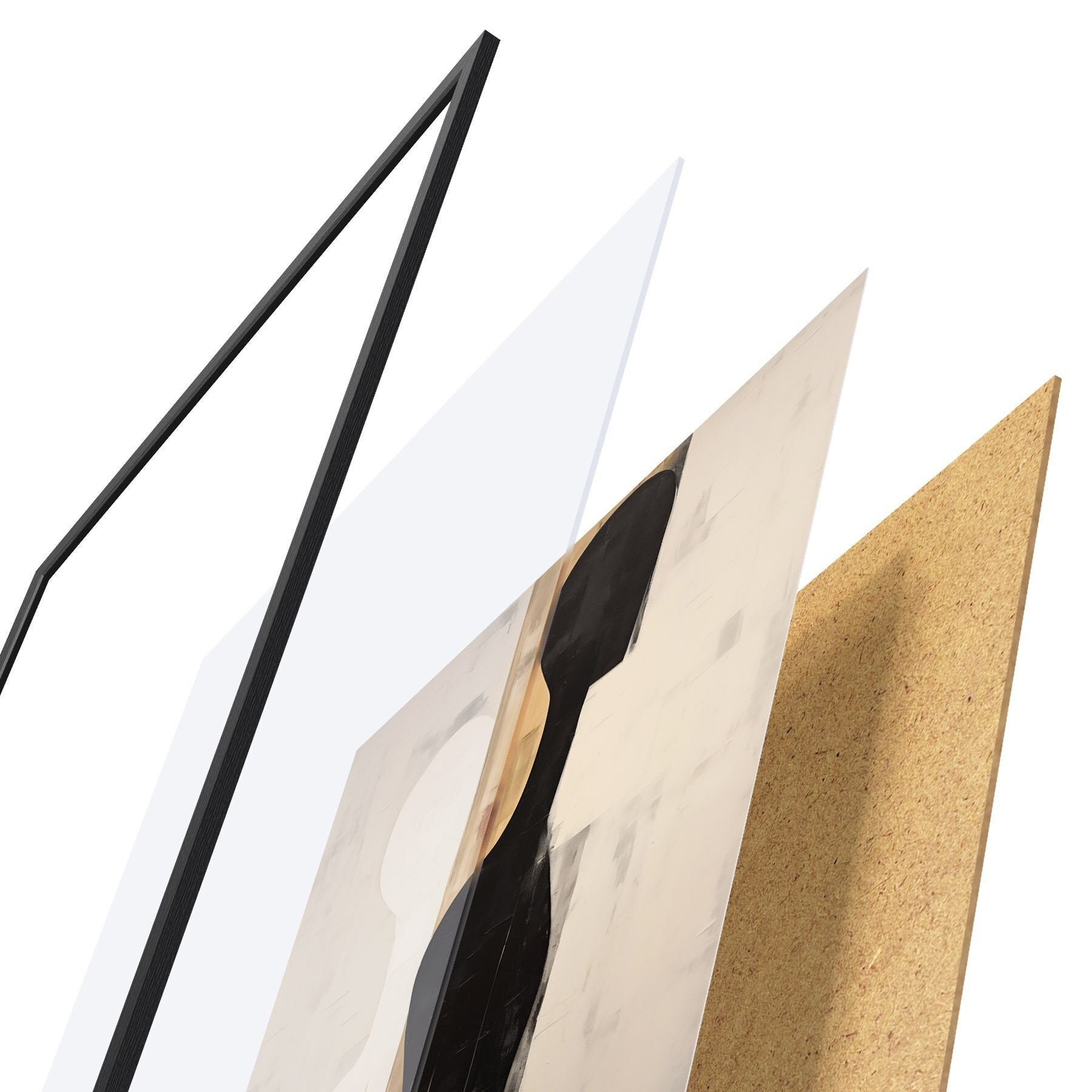 Plakatą sudaro rėmas, pleksiklas, atspausdintas vaizdas ir medžio drožlių plokštės pagrindas. Plakatą galima iš karto pakabinti ant sienos dėl kitoje pusėje esančių laikiklių.