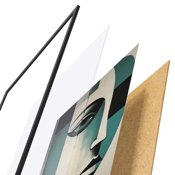 Plakatą sudaro rėmas, pleksiklas, atspausdintas vaizdas ir medžio drožlių plokštės pagrindas. Plakatą galima iš karto pakabinti ant sienos dėl kitoje pusėje esančių laikiklių.