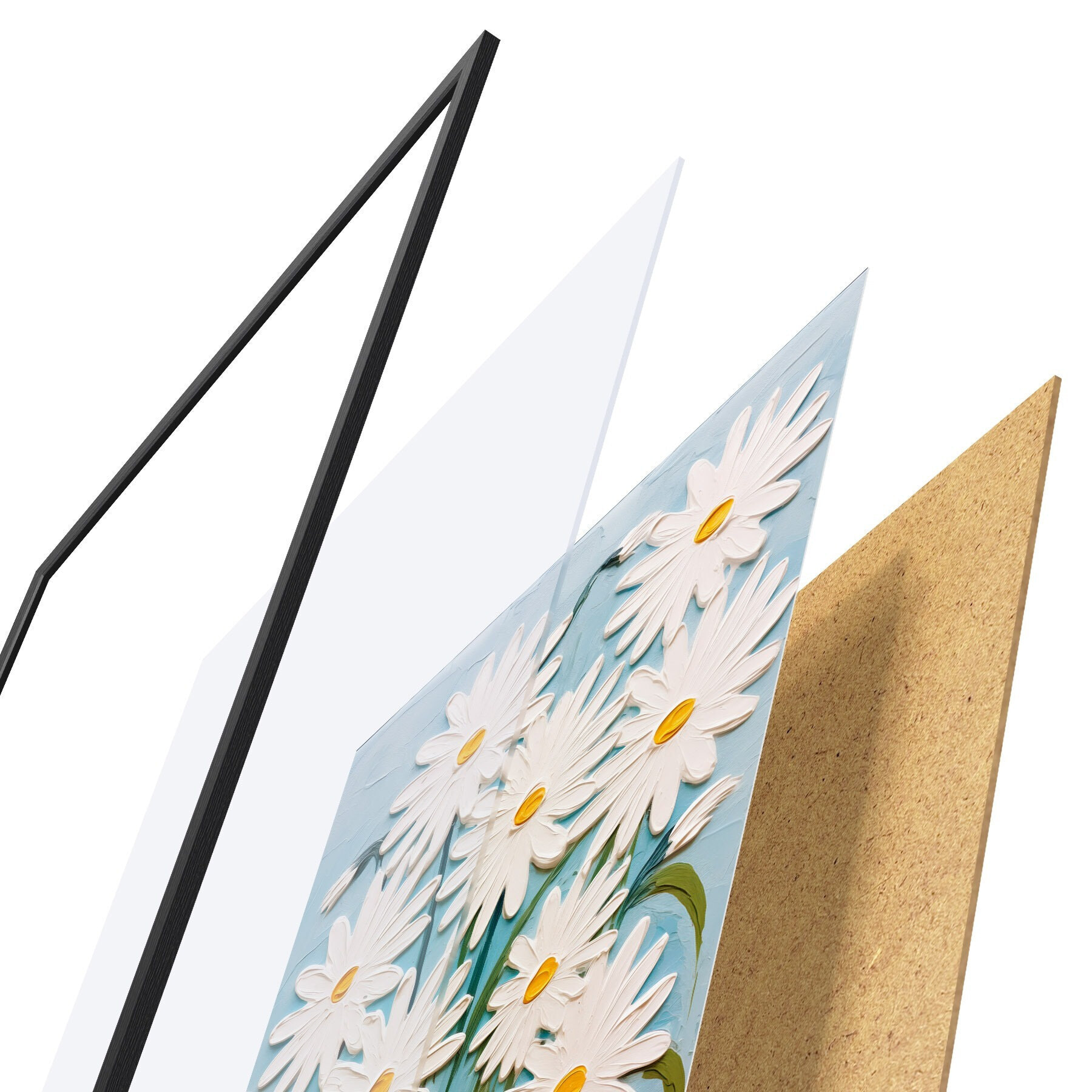 Plakatą sudaro rėmas, pleksiklas, atspausdintas vaizdas ir medžio drožlių plokštės pagrindas. Plakatą galima iš karto pakabinti ant sienos dėl kitoje pusėje esančių laikiklių.