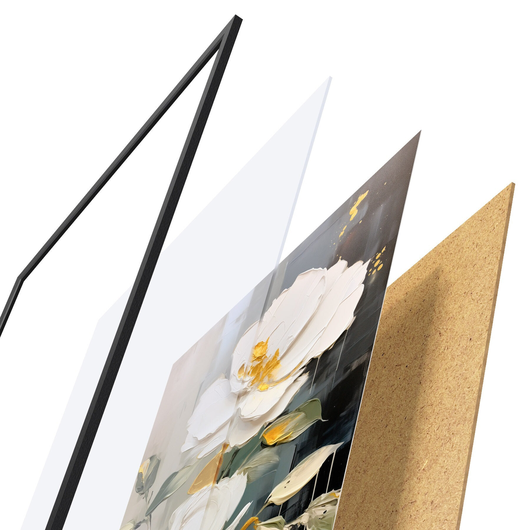 Plakatą sudaro rėmas, pleksiklas, atspausdintas vaizdas ir medžio drožlių plokštės pagrindas. Plakatą galima iš karto pakabinti ant sienos dėl kitoje pusėje esančių laikiklių.