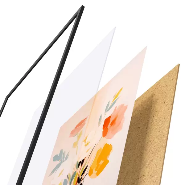 Plakatą sudaro rėmas, pleksiklas, atspausdintas vaizdas ir medžio drožlių plokštės pagrindas. Plakatą galima iš karto pakabinti ant sienos dėl kitoje pusėje esančių laikiklių.