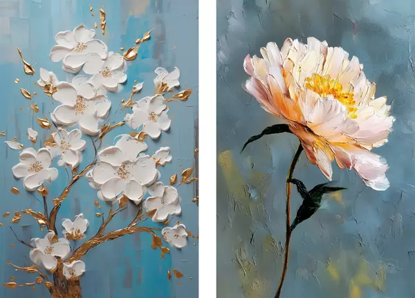 Plakatas Žydinti šaka ir bijūnas: reljefinė kompozicija d00637