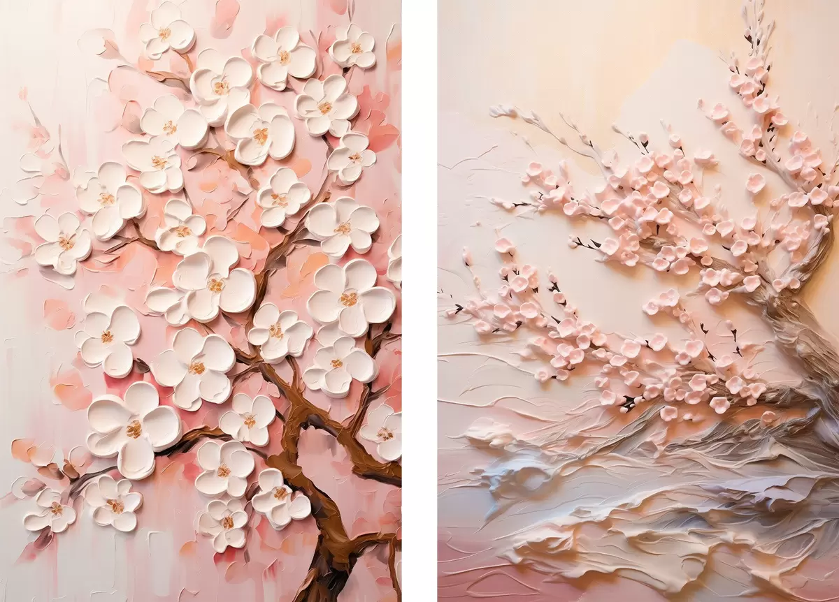 Plakatas Žydinčios sakuros: impasto stiliaus kompozicija d00638