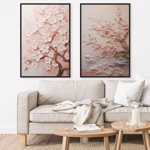 Plakatas Žydinčios sakuros: impasto stiliaus kompozicija Ne d00638