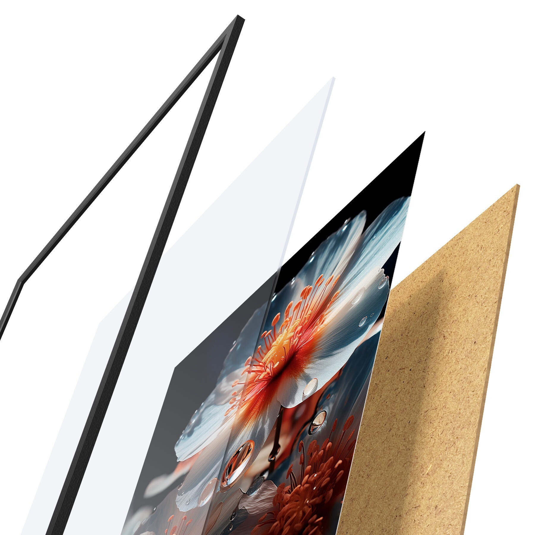Plakatą sudaro rėmas, pleksiklas, atspausdintas vaizdas ir medžio drožlių plokštės pagrindas. Plakatą galima iš karto pakabinti ant sienos dėl kitoje pusėje esančių laikiklių.