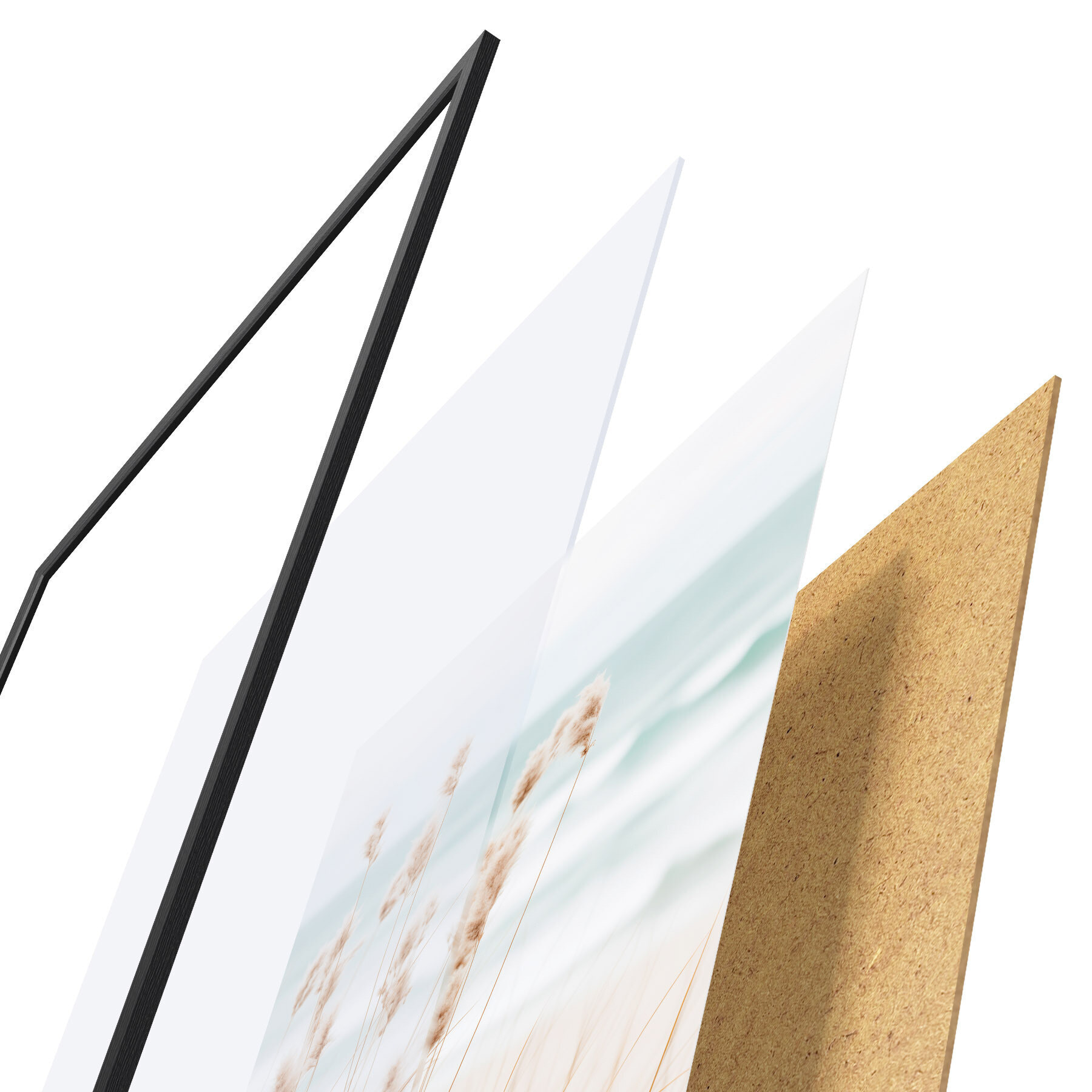 Plakatą sudaro rėmas, pleksiklas, atspausdintas vaizdas ir medžio drožlių plokštės pagrindas. Plakatą galima iš karto pakabinti ant sienos dėl kitoje pusėje esančių laikiklių.