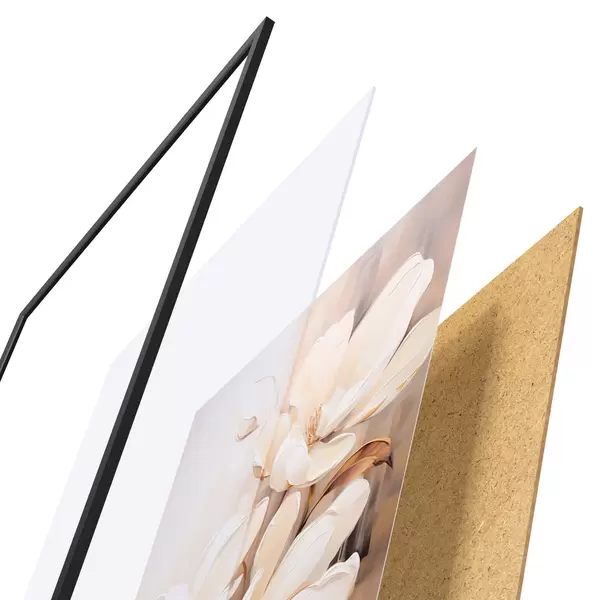 Plakatą sudaro rėmas, pleksiklas, atspausdintas vaizdas ir medžio drožlių plokštės pagrindas. Plakatą galima iš karto pakabinti ant sienos dėl kitoje pusėje esančių laikiklių.