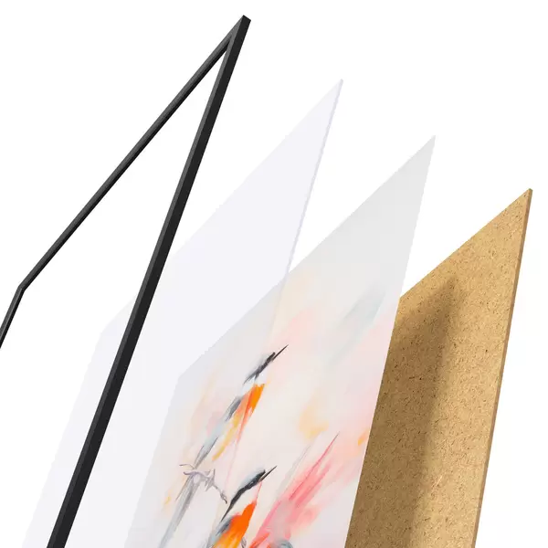 Plakatą sudaro rėmas, pleksiklas, atspausdintas vaizdas ir medžio drožlių plokštės pagrindas. Plakatą galima iš karto pakabinti ant sienos dėl kitoje pusėje esančių laikiklių.