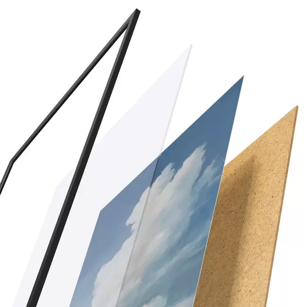 Plakatą sudaro rėmas, pleksiklas, atspausdintas vaizdas ir medžio drožlių plokštės pagrindas. Plakatą galima iš karto pakabinti ant sienos dėl kitoje pusėje esančių laikiklių.