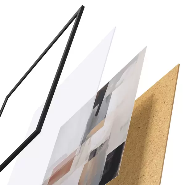 Plakatą sudaro rėmas, pleksiklas, atspausdintas vaizdas ir medžio drožlių plokštės pagrindas. Plakatą galima iš karto pakabinti ant sienos dėl kitoje pusėje esančių laikiklių.