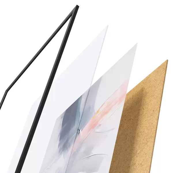 Plakatą sudaro rėmas, pleksiklas, atspausdintas vaizdas ir medžio drožlių plokštės pagrindas. Plakatą galima iš karto pakabinti ant sienos dėl kitoje pusėje esančių laikiklių.