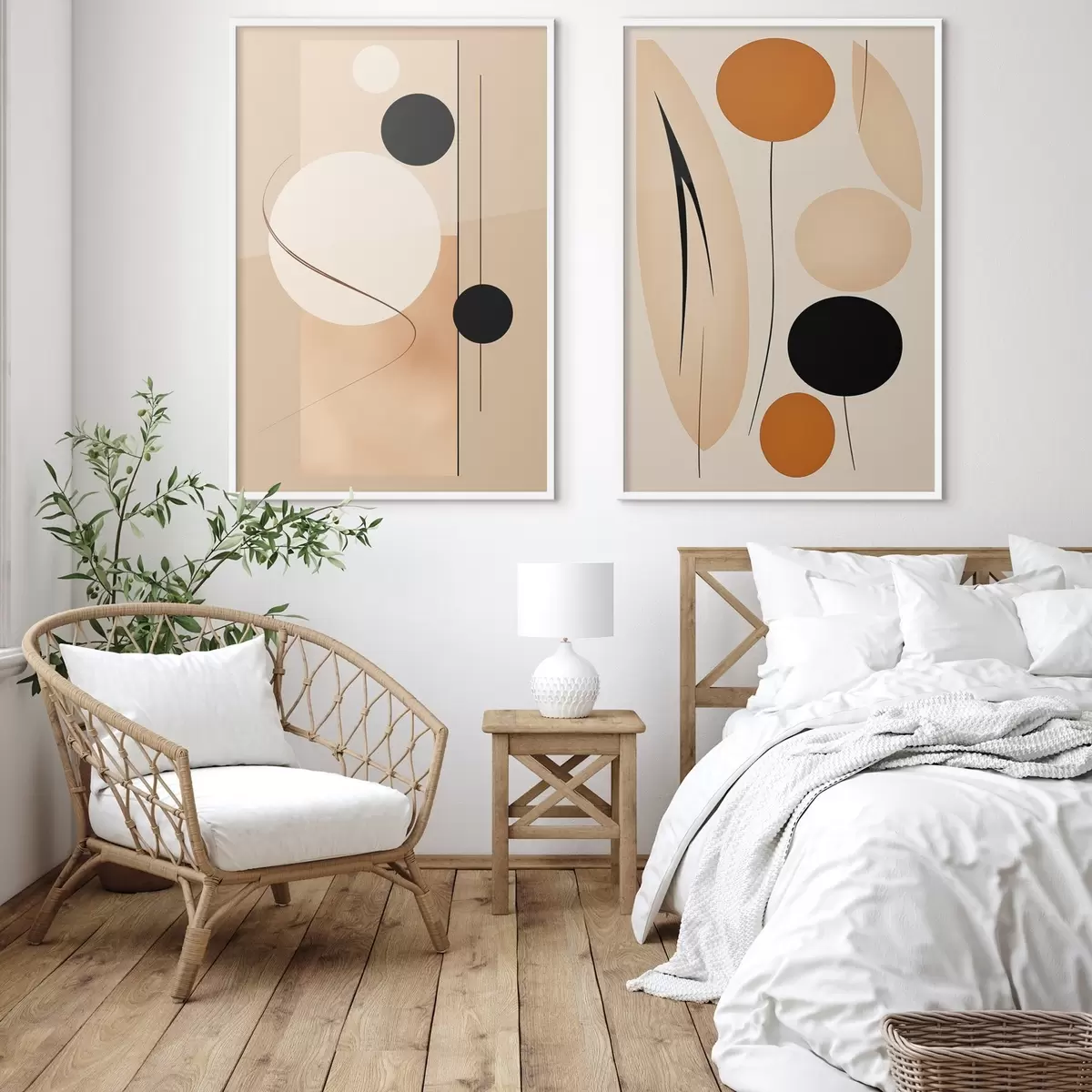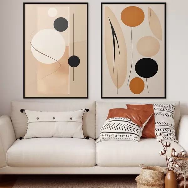 Plakatas Minimalistiniai smėlio ir juodos spalvų geometriniai apskritimai d00685