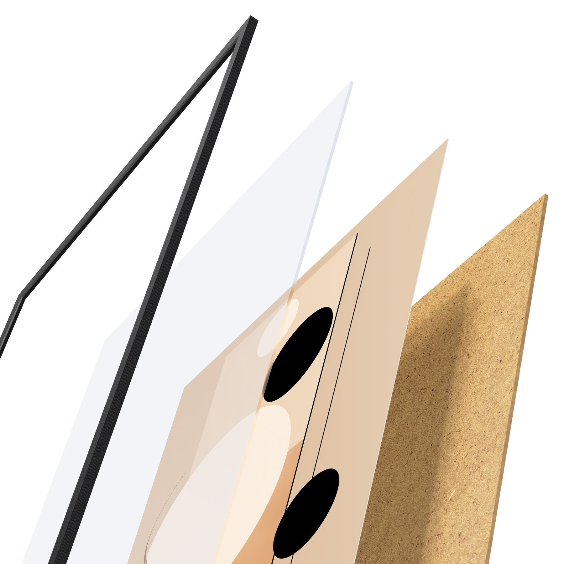 Plakatą sudaro rėmas, pleksiklas, atspausdintas vaizdas ir medžio drožlių plokštės pagrindas. Plakatą galima iš karto pakabinti ant sienos dėl kitoje pusėje esančių laikiklių.