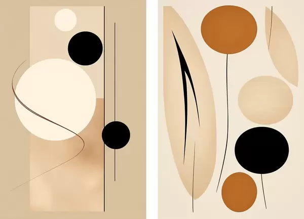 Plakatas Minimalistiniai smėlio ir juodos spalvų geometriniai apskritimai d00685