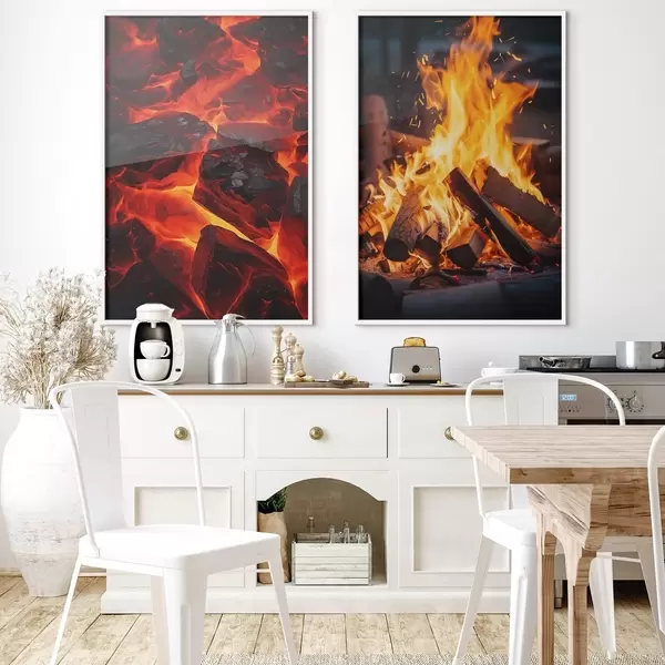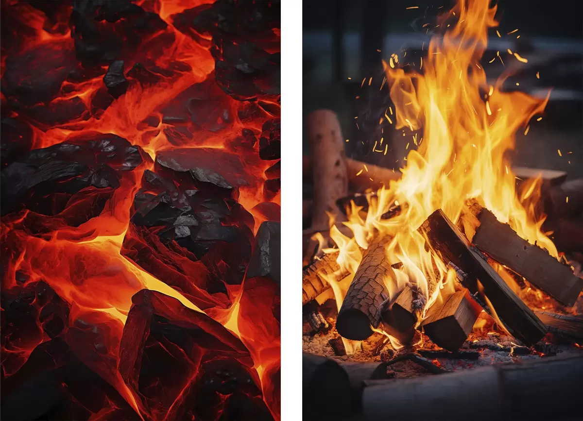 Plakatas Degančios anglys ir liepsnojanti ugnis tamsoje d00696