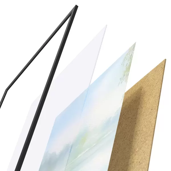 Plakatą sudaro rėmas, pleksiklas, atspausdintas vaizdas ir medžio drožlių plokštės pagrindas. Plakatą galima iš karto pakabinti ant sienos dėl kitoje pusėje esančių laikiklių.