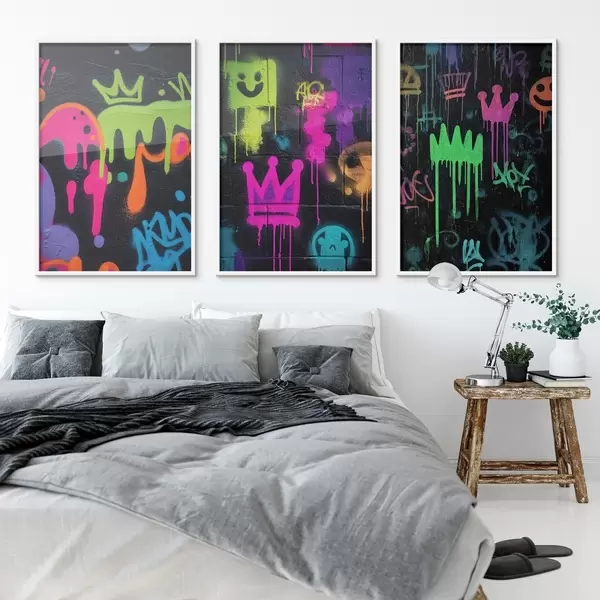 Plakatas ryškūs gatvės grafičiai ant tamsaus fono d00703