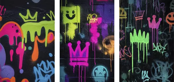 Plakatas ryškūs gatvės grafičiai ant tamsaus fono d00703