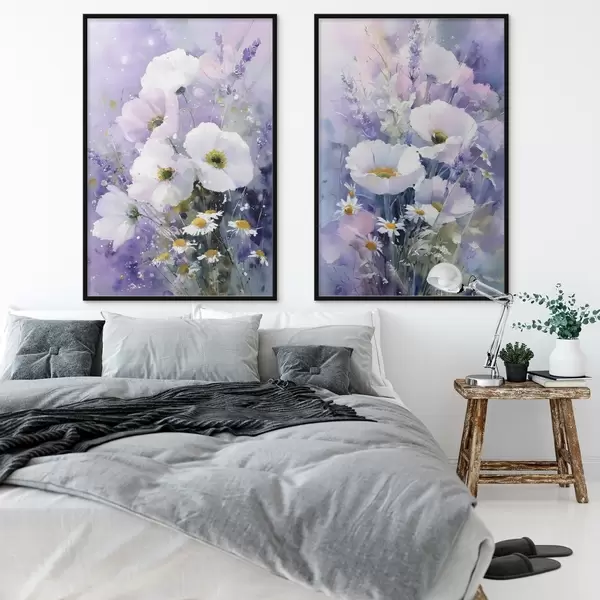 Plakatas akvarelinis puokštė alyvinės ir baltos spalvos tonais Ne d00704
