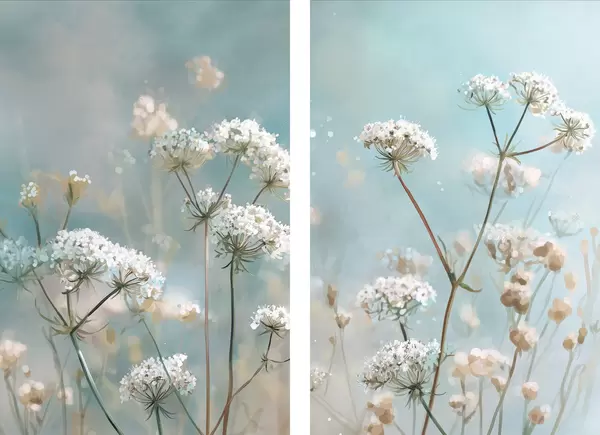 Plakatas Mėlyname fone akvarelės stiliaus karalienės Anos nėrinių gėlės d00705