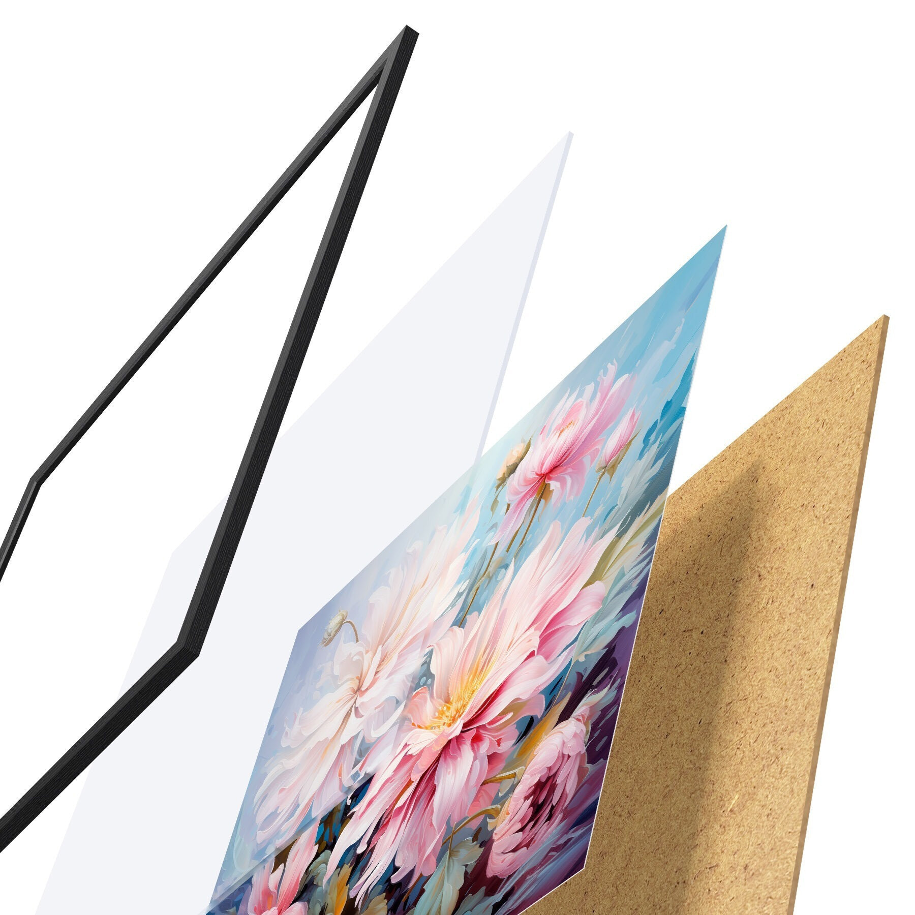 Plakatą sudaro rėmas, pleksiklas, atspausdintas vaizdas ir medžio drožlių plokštės pagrindas. Plakatą galima iš karto pakabinti ant sienos dėl kitoje pusėje esančių laikiklių.